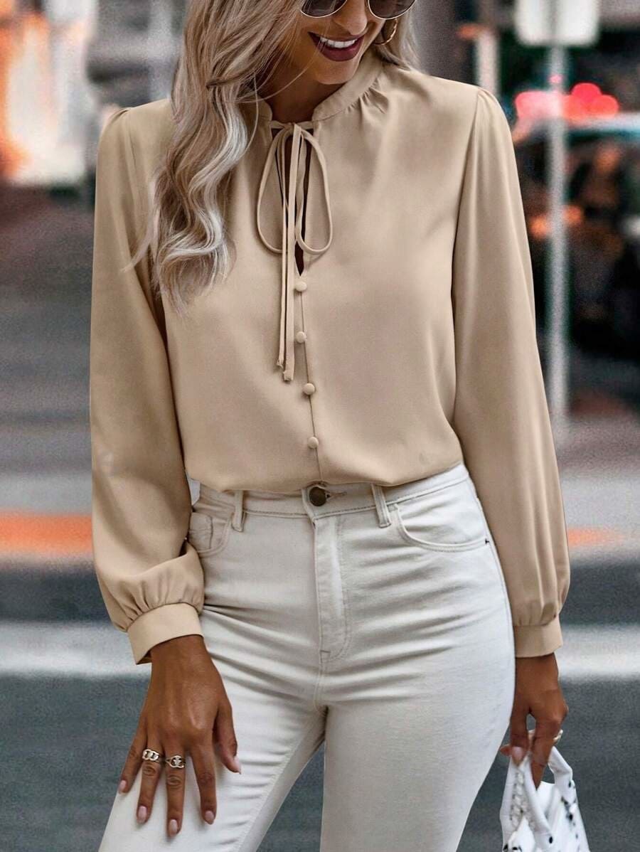 A Camisa Manga Longa Leona é a escolha perfeita para um look casual elegante. Com detalhes de laço na gola e botões, esta camisa é ideal para trazer um toque de sofisticação ao seu guarda-roupa.